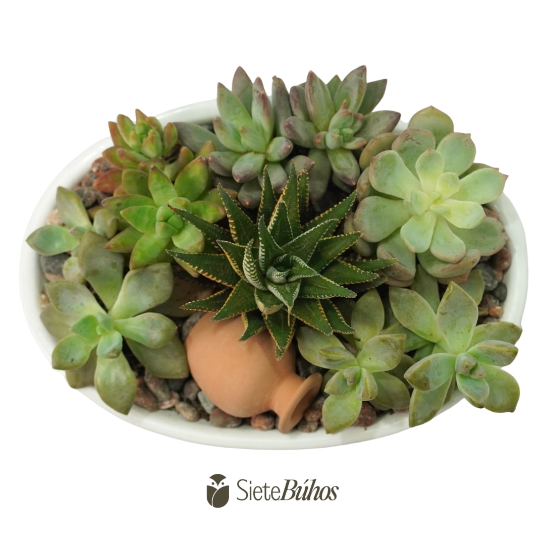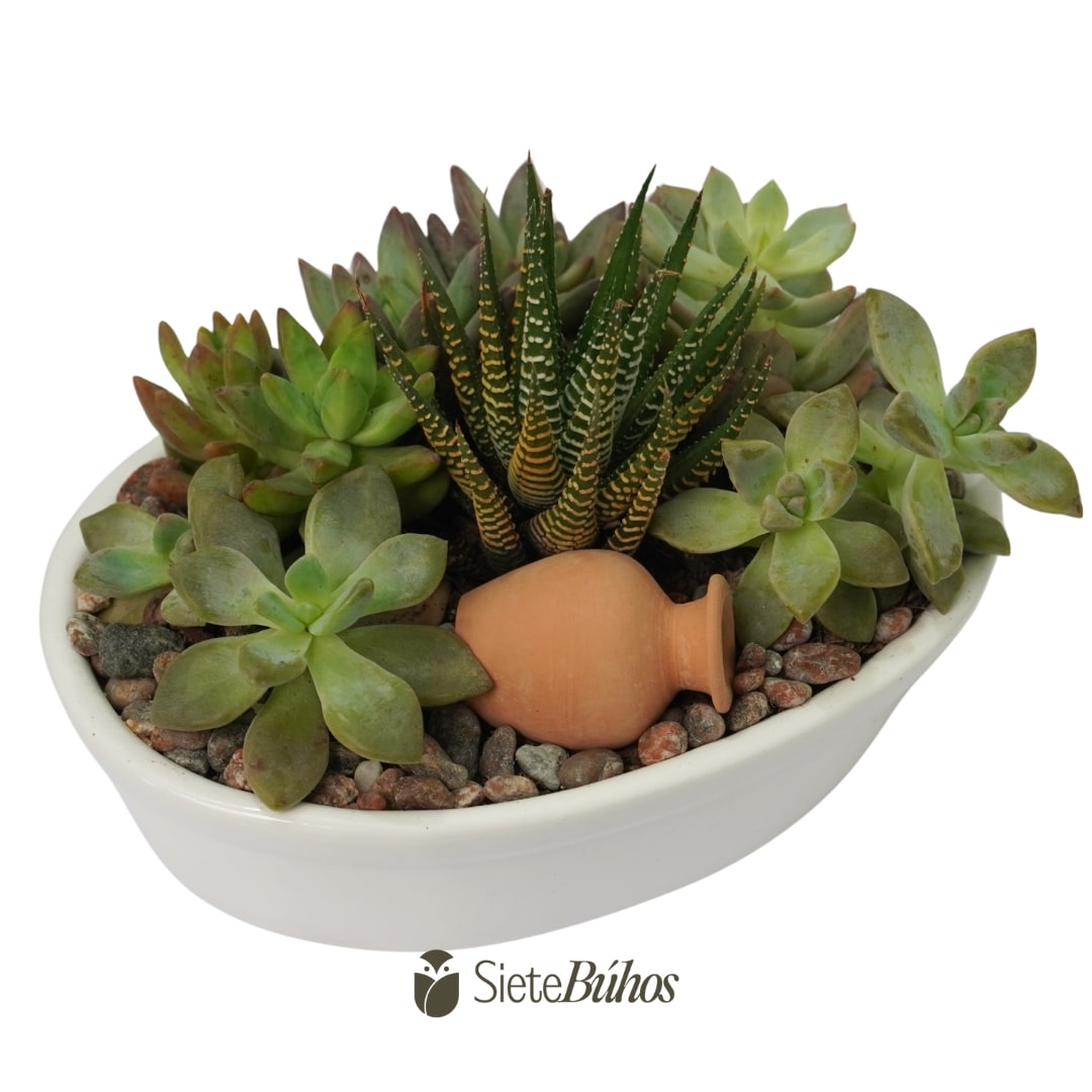 Maceta de loza ovalada con suculentas 18×12