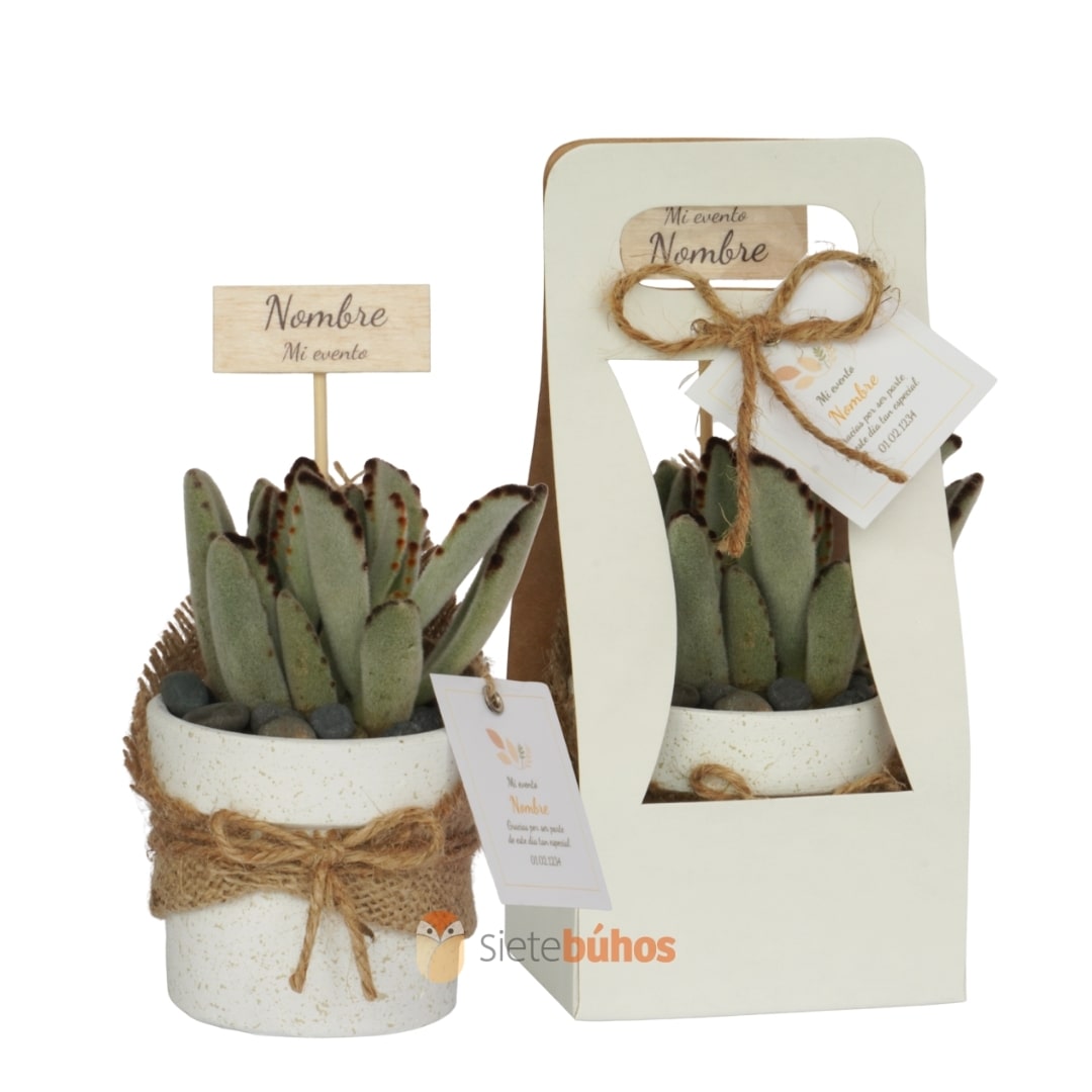 Minirecuerdos personalizados con suculentas o cactus ideales para decoración y regalos.