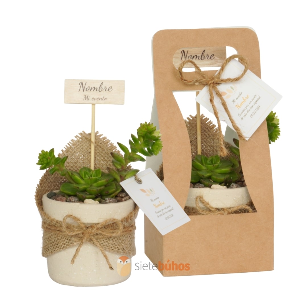 Minirecuerdos personalizados con suculentas o cactus ideales para decoración y regalos.