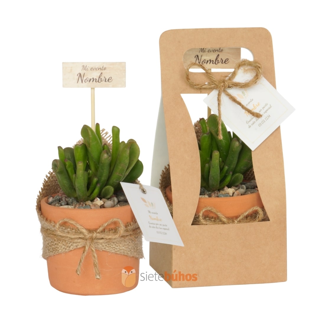Minirecuerdos personalizados con suculentas o cactus ideales para decoración y regalos.