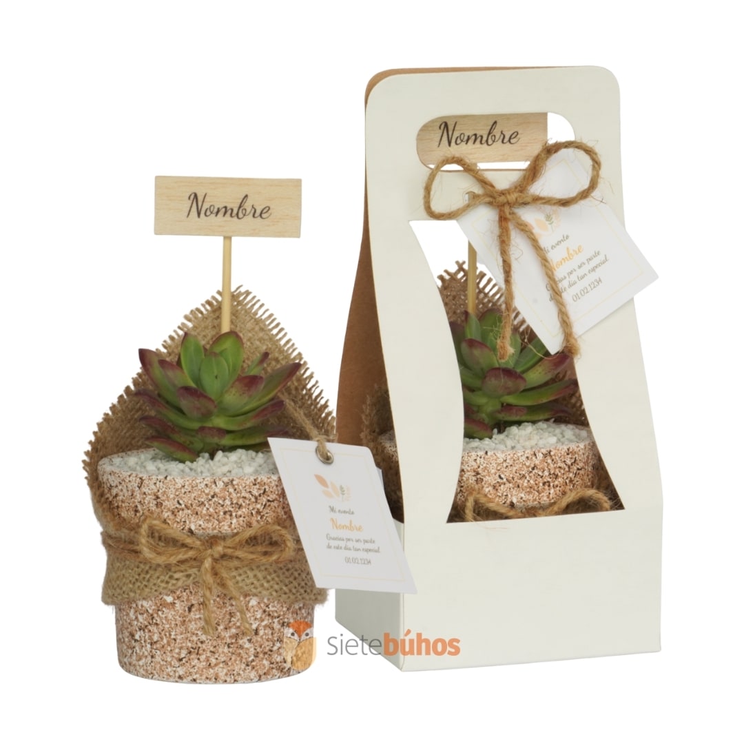 Minirecuerdos personalizados con suculentas o cactus ideales para decoración y regalos.